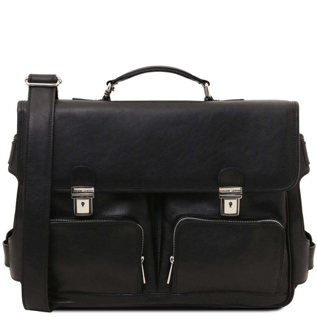 Ventimiglia - skórzana teczka wielokomorowa z przednimi kieszeniami z systemem TL SMART