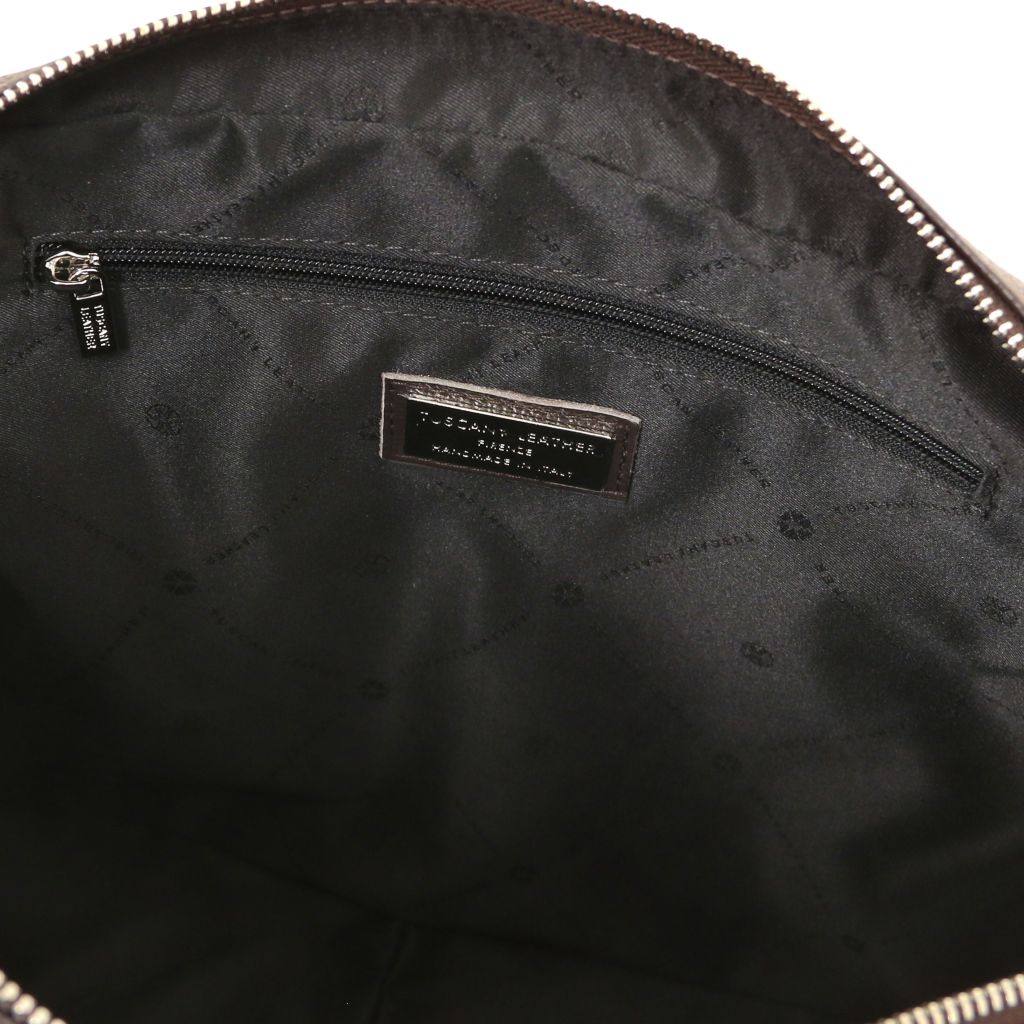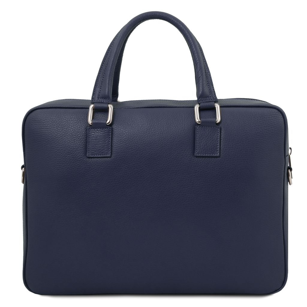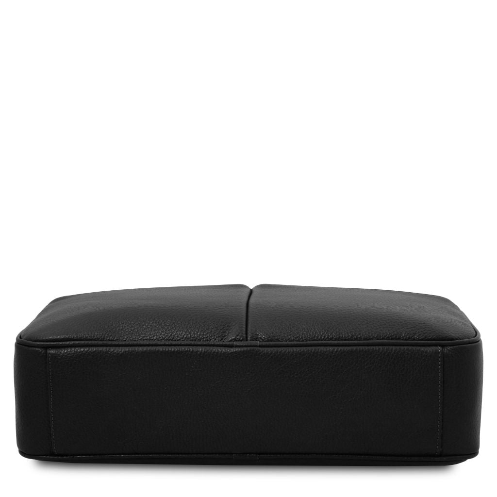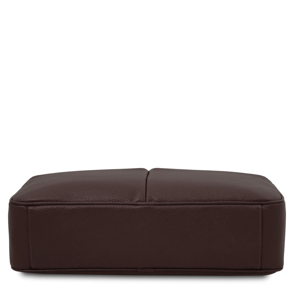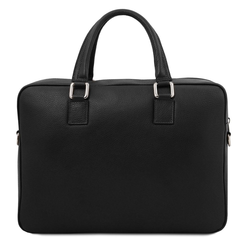 Oryginalny produkt Tuscany Leather©, certyfikat autentyczności i hologram uwierzytelniający w zestawie - Materiał: skóra o teksturze groszkowej, podszewka bawełniana - Cechy: półsztywny korpus, 1 komora - Część zewnętrzna: metalowe, prostokątne Tuscany Leather logo, 2 kieszenie z przodu z zapięciem - Część wewnętrzna: komora na laptopa, kieszeń zamykana, wyściełana przegroda - Pasek na ramię: odpinany, regulowany, skórzano-nylonowy - Pojemność: mieści format A4 - Elementy metalowe: w kolorze srebrnym - Zapięcie: zamek błyskawiczny - Akcesoria: pokrowiec - Wymiary zewnętrzne: 39.50 x 29.50 x 11.50 cm - Wymiary wewnętrzne (komór): 37.00 x 28.50 x 10.00 cm - Waga: 1.18 Kg