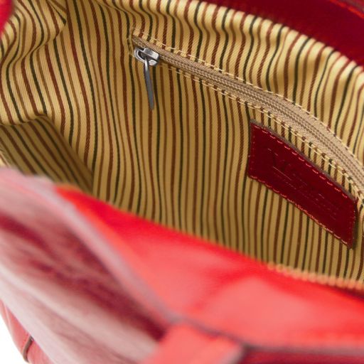 Oryginalny produkt Tuscany Leather©, certyfikat autentyczności i hologram uwierzytelniający w zestawie - Materiał: naturalna skóra licowa, ręcznie barwiona, garbowana przy użyciu tanin roślinnych, podszewka bawełniana - Cechy: półsztywny korpus, 2 komory - Część zewnętrzna: kieszeń z przodu z zapięciem, kieszeń z tyłu z zapięciem - Część wewnętrzna: kieszeń boczna na zamek, 2 kieszenie boczne niezamykane, środkowa komora na zamek - Elementy metalowe: w kolorze srebrnym, podstarzanego mosiądzu - Zapięcie: suwak - Uchwyt: skórzany, odpinany - Akcesoria: pokrowiec - Wymiary: 28.50 x 29.50 x 7.50 cm - Waga: 0.70 Kg