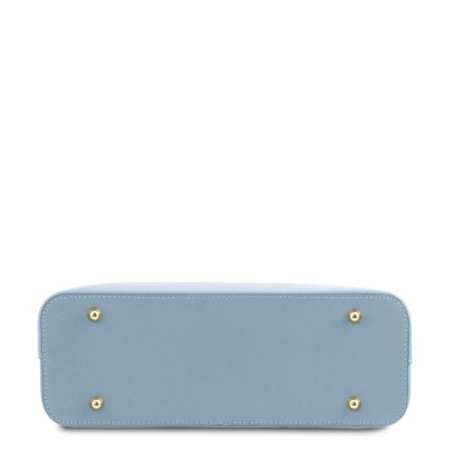 Oryginalny produkt Tuscany Leather©, certyfikat autentyczności i hologram uwierzytelniający w zestawie - Materiał: skóra gładka, podszewka poliestrowa - Cechy: sztywny korpus, 2 komory - Część zewnętrzna: złoty nadruk z Tuscany Leather logo, ochronne metalowe stopki na spodzie - Część wewnętrzna: kieszeń boczna na zamek, 2 kieszenie boczne niezamykane, środkowa komora na zamek - Pasek na ramię: odpinany i regulowany, skórzany - Elementy metalowe: w kolorze złotym - Zapięcie: suwak - Akcesoria: pokrowiec - Wymiary: 37.50 x 27.50 x 16.50 cm - Waga: 0.90 Kg