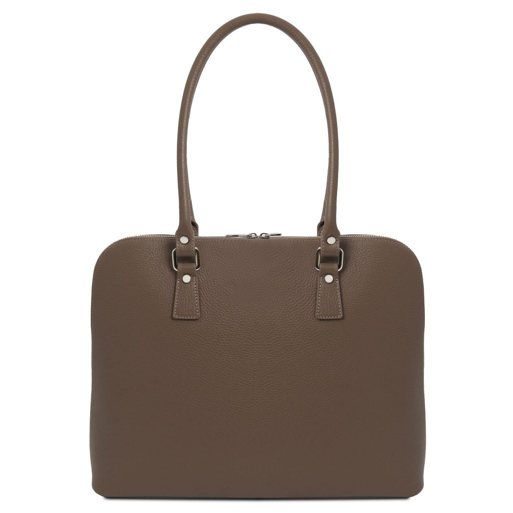 Oryginalny produkt Tuscany Leather©, certyfikat autentyczności i hologram uwierzytelniający w zestawie - Materiał: skóra o teksturze groszkowej, podszewka poliestrowa - Cechy: półsztywny korpus, 2 komory - Część zewnętrzna: metalowe TL logo, ochronne metalowe stopki na spodzie - Część wewnętrzna: kieszeń niezamykana, kieszeń na zamek - Pasek na ramię: odpinany i regulowany, skórzany - Pojemność: mieści format A4 - Elementy metalowe: w kolorze srebrnym - Zapięcie: zamek błyskawiczny z 3 stron - Akcesoria: pokrowiec - Wymiary zewnętrzne: 40.50 x 31.50 x 13.00 cm - Wymiary wewnętrzne: 38.00 x 31.00 x 12.00 cm - Waga: 1.20 Kg