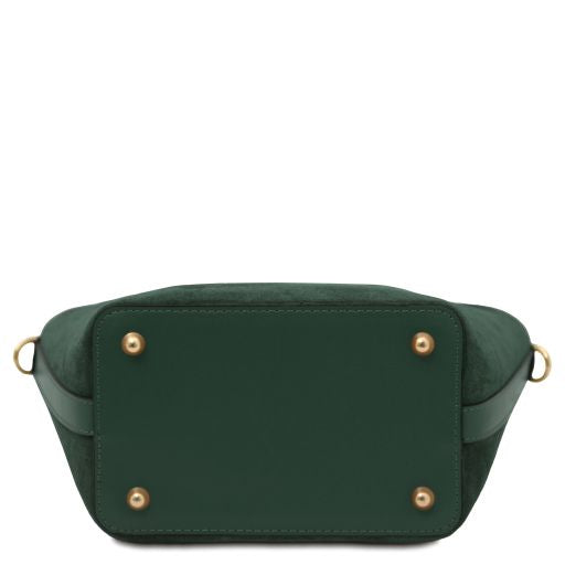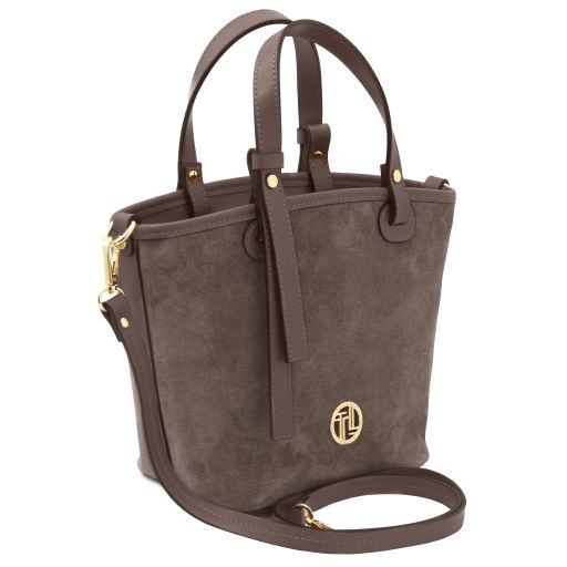 Oryginalny produkt Tuscany Leather©, certyfikat autentyczności i hologram uwierzytelniający w zestawie - Materiał: skóra zamszowa, skóra gładka, podszewka poliestrowa - Cechy: półsztywny korpus, 1 komora - Część zewnętrzna: ochronne metalowe stopki na spodzie - Część wewnętrzna: kieszeń na zamek, 2 kieszenie niezamykane - Pasek na ramię: odpinany, skórzany - Elementy metalowe: w kolorze złotym - Zapięcie: suwak - Akcesoria: pokrowiec - Wymiary: 27.00 x 21.50 x 12.50 cm - Waga: 0.54 Kg