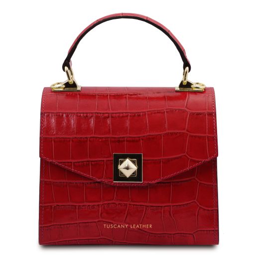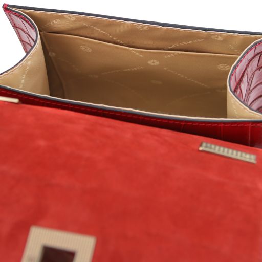 Oryginalny produkt Tuscany Leather©, certyfikat autentyczności i hologram uwierzytelniający w zestawie - Materiał: skóra tłoczona, skóra zamszowa, podszewka poliestrowa - Cechy: sztywny korpus, 1 komora - Część zewnętrzna: nadruk z Tuscany Leather logo w kolorze złotym, ochronne metalowe stopki na spodzie - Część wewnętrzna: kieszeń boczna niezamykana, kieszeń boczna na zamek - Pasek na ramię: odpinany i regulowany, skórzany - Elementy metalowe: w kolorze złotym - Zapięcie: metalowy zamek obrotowy - Akcesoria: pokrowiec - Wymiary: 19.00 x 17.00 x 10.50 cm - Waga: 0.35 Kg