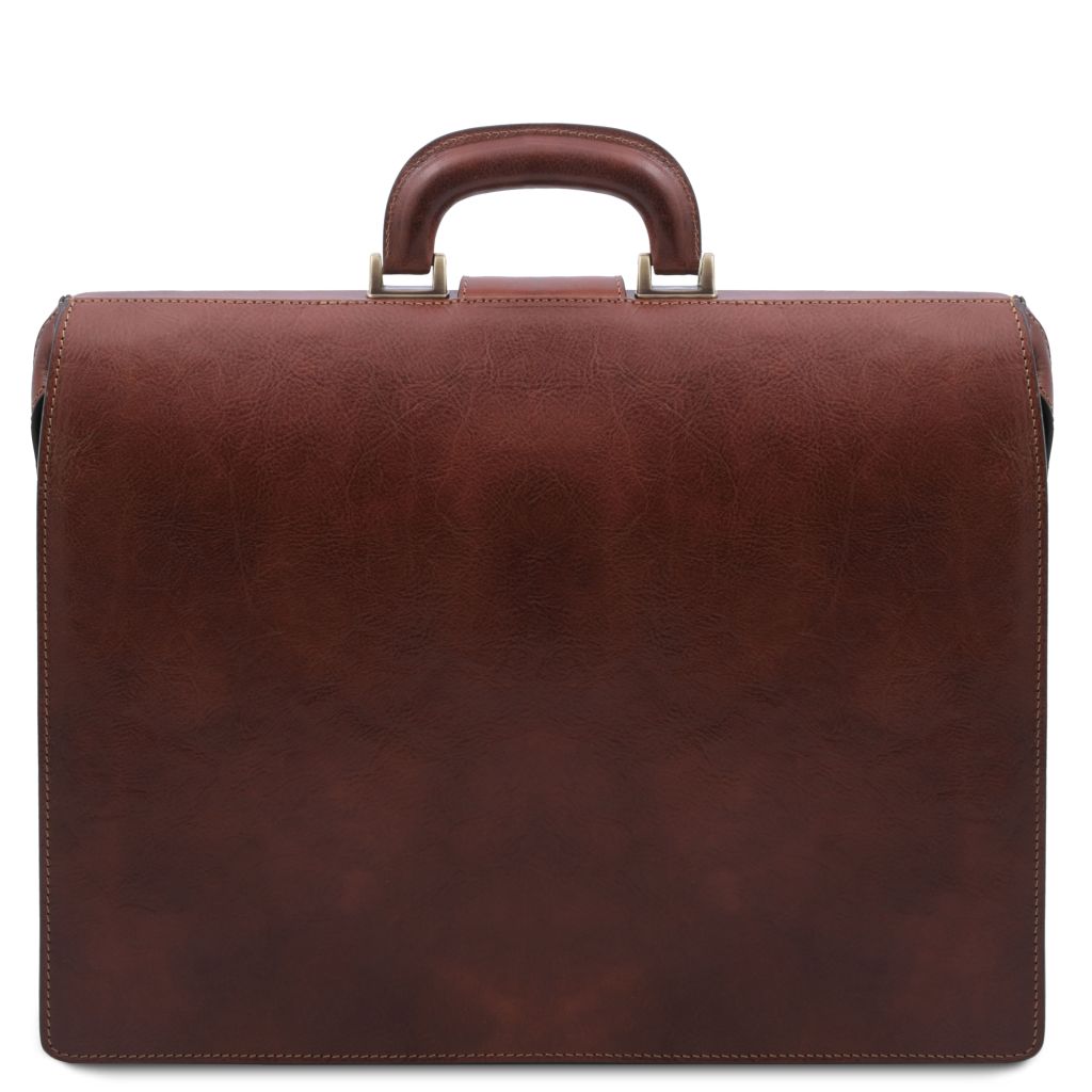 Oryginalny produkt Tuscany Leather©, certyfikat autentyczności i hologram uwierzytelniający w zestawie - Materiał: matowa, naturalna skóra licowa, ręcznie barwiona, garbowana przy użyciu tanin roślinnych, skórzana podszewka - Cechy: sztywny korpus, 3 komory - Część wewnętrzna kieszeń niezamykana, uchwyt na brelok, kieszenie na karty płatnicze, kieszeń na zamek, uchwyt na długopis - Pojemność: mieści format A4, mieści 15,6" laptopa - Okucie: w kolorze szczotkowanego mosiądzu, w kolorze srebrnym - Zapięcie: metalowa, wciskana sprzączka na kluczyk z wygrawerowanym Tuscany Leather logo - Akcesoria: pokrowiec - Wymiary: 42.00 x 31.00 x 15.50 cm - Waga: 2.03 Kg
