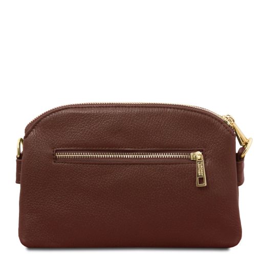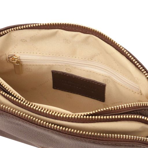 Oryginalny produkt Tuscany Leather©, certyfikat autentyczności i hologram uwierzytelniający w zestawie - Materiał: skóra o teksturze groszkowej, podszewka poliestrowa - Cechy: miękki korpus, 3 komory - Część zewnętrzna: metalowe TL logo, kieszeń z tyłu z zapięciem - Część wewnętrzna: kieszeń boczna na zamek - Pasek na ramię: odpinany i regulowany, skórzany - Elementy metalowe: w kolorze złotym - Zapięcie: suwak, zatrzask magnetyczny - Akcesoria: pokrowiec - Wymiary: 24.50 x 16.00 x 6.00 cm - Waga: 0.45 Kg