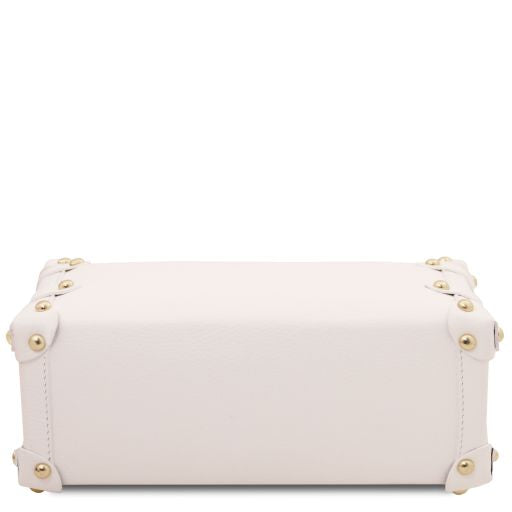 Oryginalny produkt Tuscany Leather©, certyfikat autentyczności i hologram uwierzytelniający w zestawie - Materiał: skóra o teksturze groszkowej, podszewka poliestrowa - Cechy: półsztywny korpus, 1 komora - Część zewnętrzna: złoty nadruk z Tuscany Leather logo, ochronne metalowe stopki na spodzie - Część wewnętrzna: kieszeń boczna niezamykana, kieszeń boczna na zamek - Pasek na ramię: odpinany i regulowany, skórzany - Elementy metalowe: w kolorze złotym - Zapięcie: suwak - Uchwyt: skórzany, odpinany - Akcesoria: pokrowiec - Wymiary: 24.50 x 15.00 x 10.00 cm - Waga: 0.47 Kg