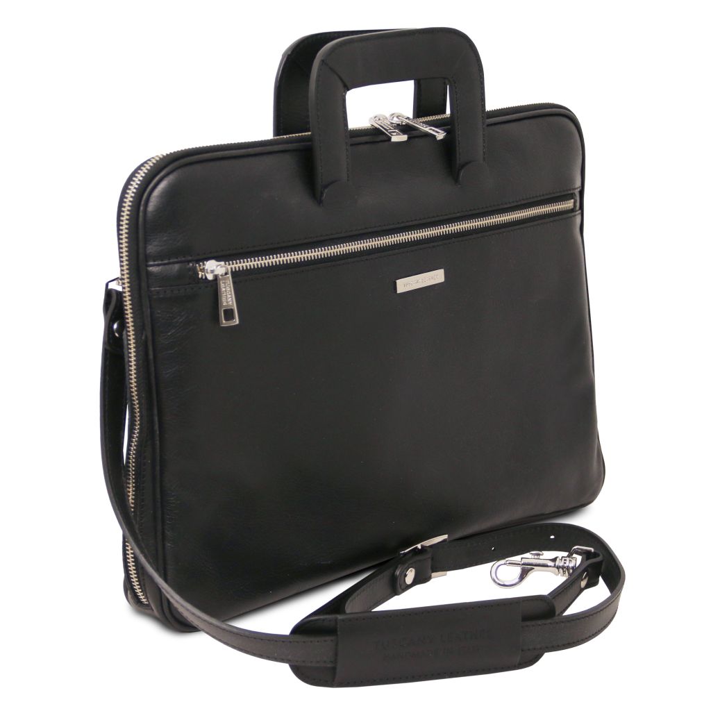 Oryginalny produkt Tuscany Leather©, certyfikat autentyczności i hologram uwierzytelniający w zestawie - Materiał: matowa, naturalna skóra licowa, ręcznie barwiona, garbowana przy użyciu tanin roślinnych, bawełniana podszewka - Cechy: półsztywny korpus, 2 komory - Część zewnętrzna: metalowe, prostokątne Tuscany Leather logo, przednia kieszeń z zapięciem, tylna kieszeń z zapięciem - Część wewnętrzna: kieszeń na kartę płatniczą, kieszeń na zamek, 2 kieszenie niezamykane, środkowa komora na zamek, uchwyt na długopis - Pasek na ramię: odpinany i regulowany, skórzany - Pojemność: mieści format A4 - Elementy metalowe: w kolorze srebrnym, w kolorze szczotkowanego mosiądzu - Zapięcie: zamek błyskawiczny - Akcesoria: pokrowiec - Wymiary zewnętrzne: 40.00 x 28.00 x 4.50 cm - Wymiary wewnętrzne: 34.00 x 26.50 x 2.00 cm - Waga: 1.00 Kg