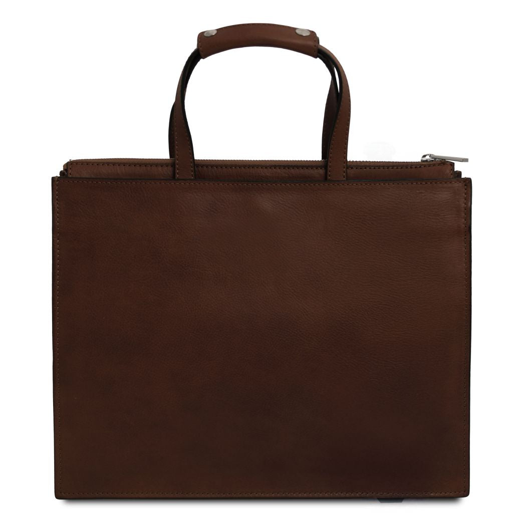 Oryginalny produkt Tuscany Leather©, certyfikat autentyczności i hologram uwierzytelniający w zestawie - Materiał: matowa, naturalna skóra licowa, ręcznie barwiona, garbowana przy użyciu tanin roślinnych, bawełniana podszewka, naturalna podszewka - Cechy: sztywny korpus, 3 komory - Część zewnętrzna: metalowe, prostokątne Tuscany Leather logo - Część wewnętrzna: kieszeń niezamykana, dołączany brelok na klucze, kieszeń na kartę płatniczą, kieszeń na zamek, uchwyt na długopis - Pasek na ramię: odpinany i regulowany, skórzany - Pojemność: mieści format A4 - Elementy metalowe: w kolorze srebrnym, w kolorze szczotkowanego mosiądzu - Zapięcie: zamek błyskawiczny - Akcesoria: pokrowiec - Wymiary zewnętrzne: 37.00 x 29.00 x 9.00 cm - Wymiary wewnętrzne: 33.00 x 25.00 x 7.00 cm - Waga: 1.40 Kg