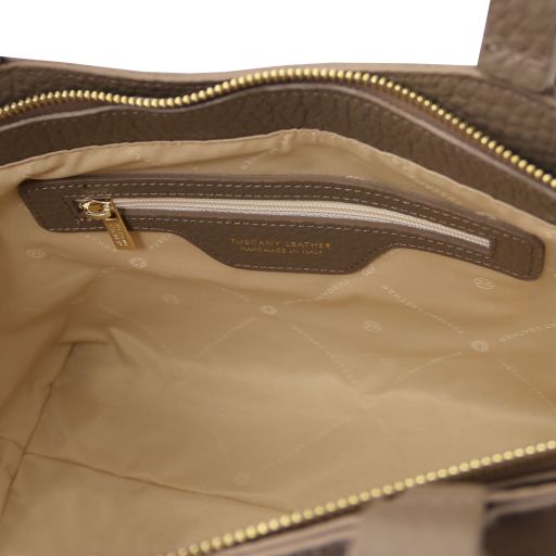 Oryginalny produkt Tuscany Leather©, certyfikat autentyczności i hologram uwierzytelniający w zestawie - Materiał: skóra o grubej teksturze groszkowej, skóra zamszowa, podszewka poliestrowa - Cechy: półsztywny korpus, 1 komora - Część zewnętrzna: nadruk z Tuscany Leather logo, ochronne metalowe stopki na spodzie - Część wewnętrzna: kieszeń boczna niezamykana, kieszeń boczna na zamek - Elementy metalowe: w kolorze złotym - Zapięcie: suwak - Uchwyt: regulowany, skórzany - Akcesoria: pokrowiec - Wymiary: 38.00 x 22.50 x 15.00 cm - Waga: 0.68 Kg