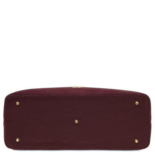 Oryginalny produkt Tuscany Leather©, certyfikat autentyczności i hologram uwierzytelniający w zestawie - Materiał: skóra zamszowa, skóra o teksturze groszkowej, podszewka poliestrowa - Cechy: półsztywny korpus, 2 komory - Część zewnętrzna: metalowe TL logo, ochronne metalowe stopki na spodzie - Część wewnętrzna : kieszeń boczna niezamykana, kieszeń boczna na zamek, środkowa komora na zamek - Pasek na ramię: odpinany i regulowany, skórzany - Pojemność: mieści format A4 - Elementy metalowe: w kolorze złotym - Zapięcie: suwak - Akcesoria: pokrowiec - Wymiary: 35.00 x 25.50 x 14.50 cm - Waga: 1.00 Kg