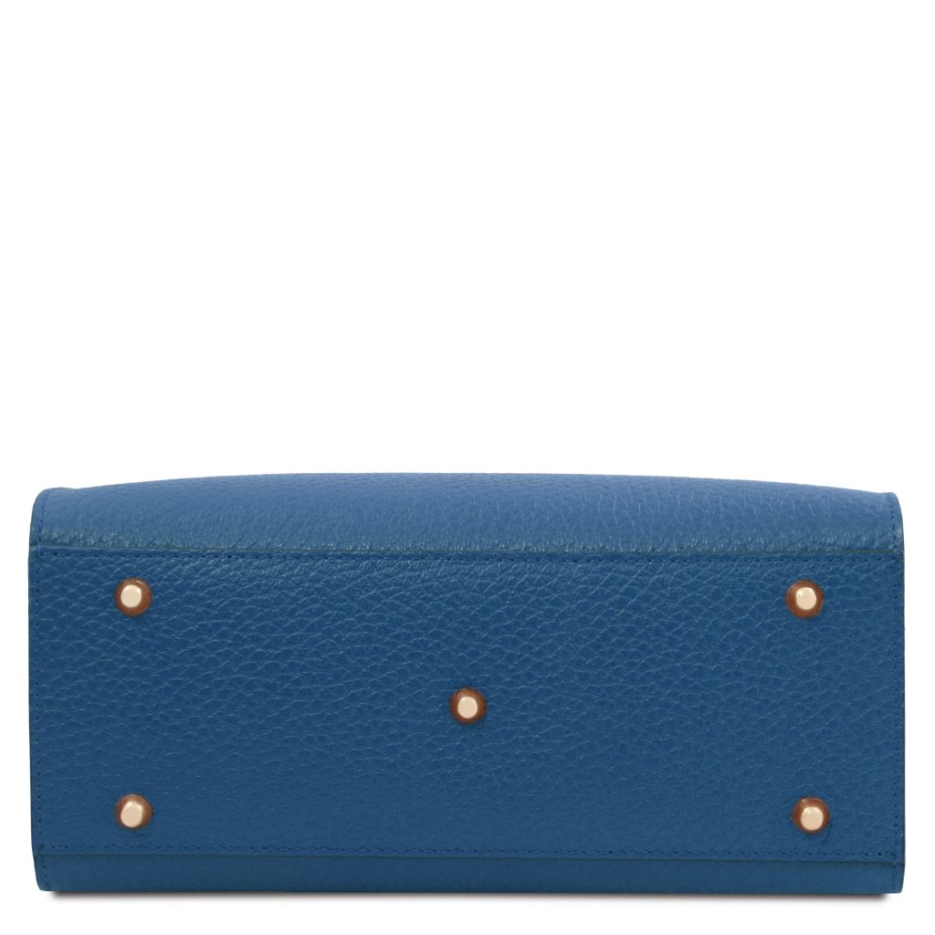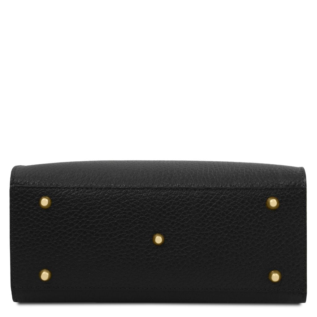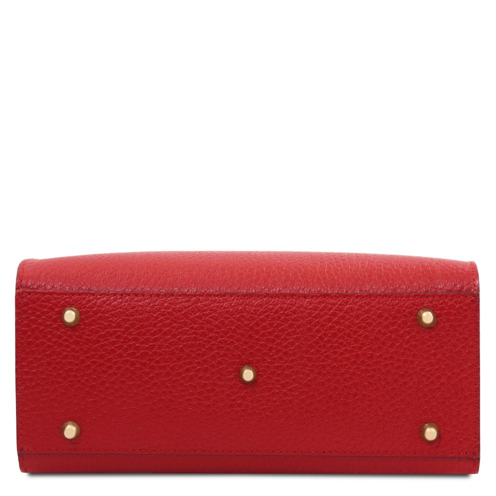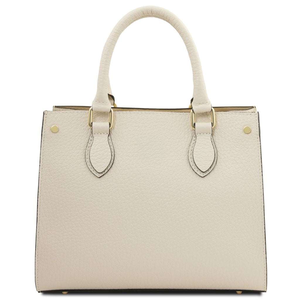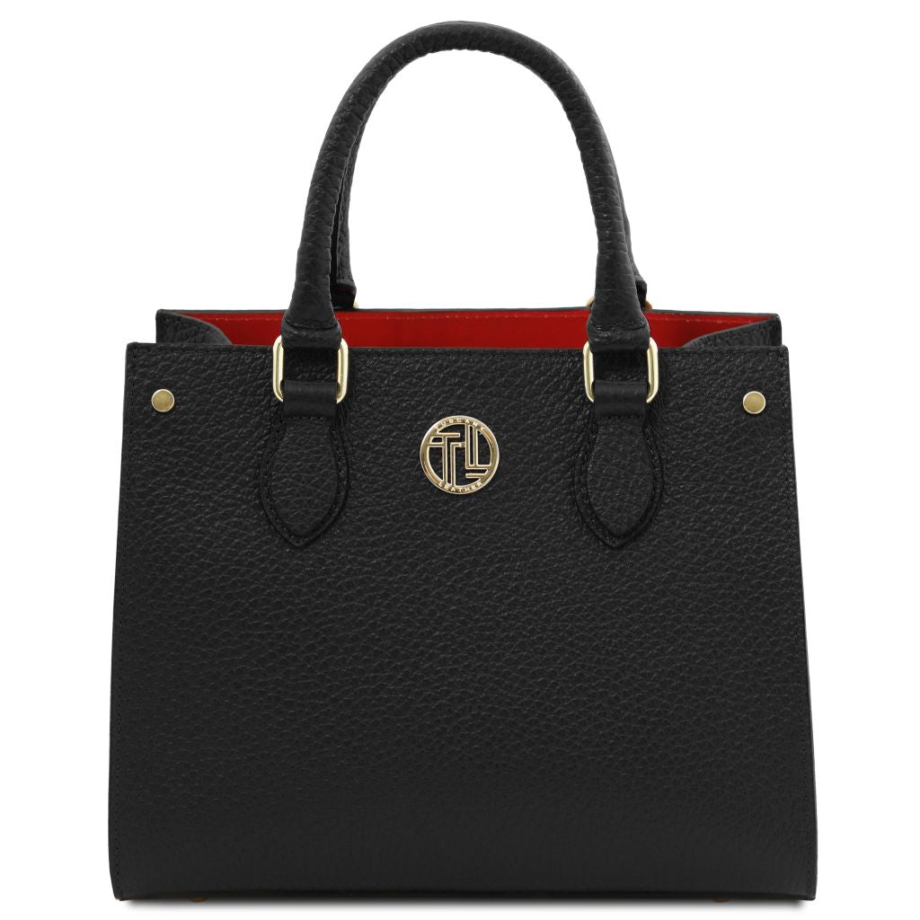 Oryginalny produkt Tuscany Leather©, certyfikat autentyczności i hologram uwierzytelniający w zestawie - Materiał: skóra o grubej teksturze groszkowej, podszewka poliestrowa - Cechy: sztywny korpus, 1 komora - Część zewnętrzna: metalowe TL logo, ochronne metalowe stopki na spodzie - Część wewnętrzna: kieszeń boczna na zamek, kieszeń boczna niezamykana - Pasek na ramię: odpinany i regulowany, skórzany - Elementy metalowe: w kolorze złotym - Zapięcie: suwak - Akcesoria: pokrowiec - Wymiary: 27.00 x 22.00 x 12.00 cm - Waga: 0.78 Kg